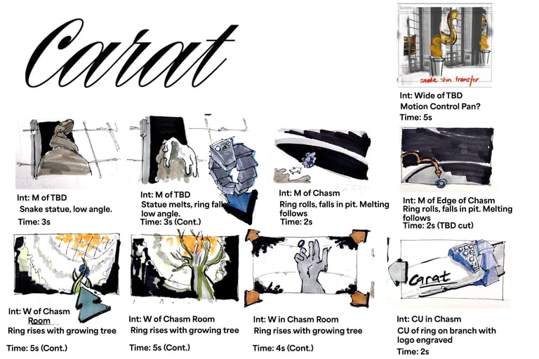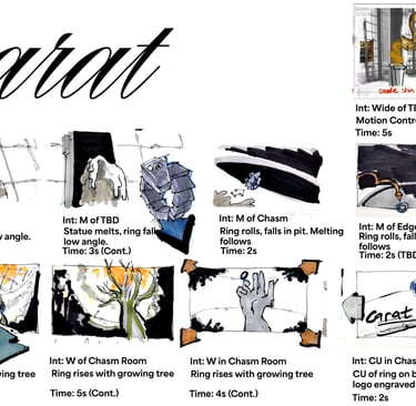 Developing a story for a pitch can be challenging because your story should be interesting, and people need to understand the story in a 30-second commercial. We started developing multiple ideas for what the story should be and how everything should look like, and for that first meeting, we settled on a story. Shout out to my teammate Zane for helping us do the story board drawings. The following story board was the first vesion of our story.